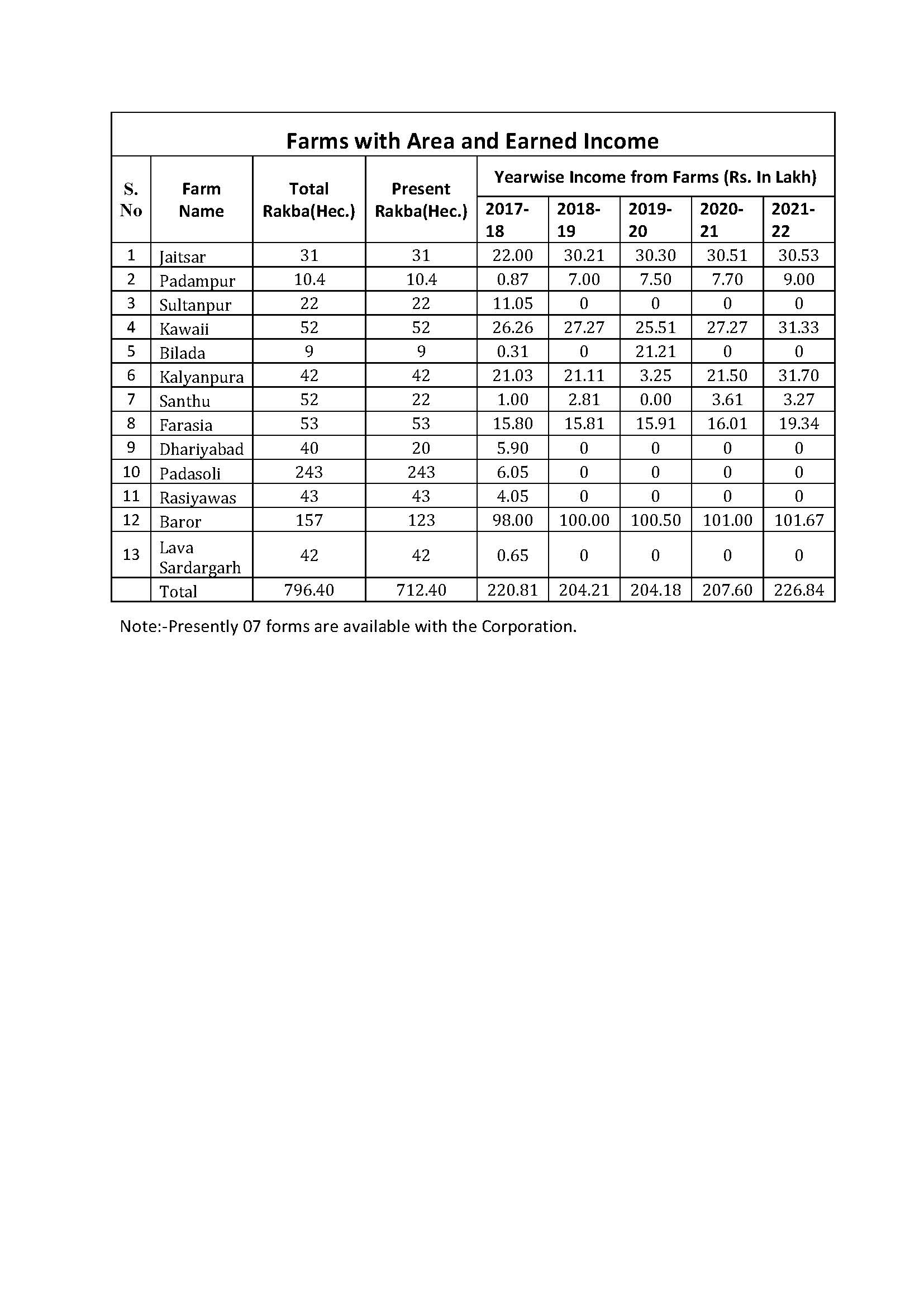 Corporation has earned Rs. 226.84 Lacs in Financial Year. 2021-22 from its farms Corporation previous Financial Year 2020-21 Corporation has earned Rs. 207.60 Lacs from its Farm. Corporation Continuously Working hard to Increase Production and profitability in this sector.